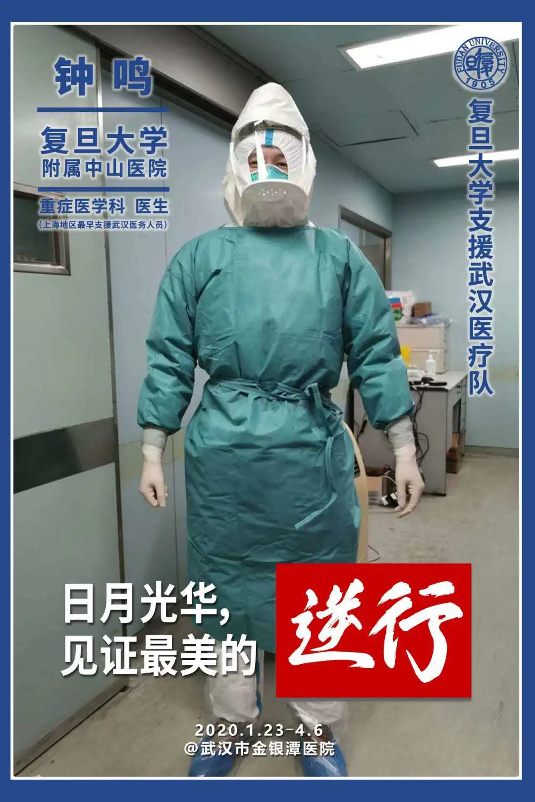 离时临近年关,风雪载途。归时阳春三月,柳暗花明。4月6日,钟鸣医生回家了。他是第一位驰援武汉的上海医生。1月23日小年夜,单枪匹马奔赴武汉前线,一个人就是一支队伍,和武汉“守军”共克时艰,迎来援鄂“战队”并肩作战,送走“战友”继续坚守。这位最早逆行的上海援鄂医疗专家,也是最后一批返沪的复旦抗疫战士。