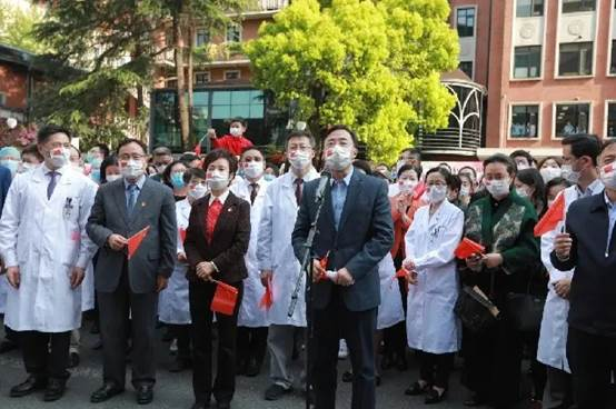 附属中山医院党委书记汪昕主持欢迎仪式,他表示,“扶危渡厄,医者担当;国家召唤,义不容辞!”“中山人”响应号令、快速投入到抗击疫情的战斗中去,为抗击新冠肺炎做出了应有的贡献。在他们身上,时刻反映出一切为了国家、一切为了病人的中山精神!此次抗击疫情战斗中,无论驰援武汉、奋战上海公卫、还是坚守本职岗位的中山医院抗疫勇士都冲锋在前,勇挑重担,日夜与疫魔奋战,出色完成了党和人民交予的任务,彰显了“中山人”的精神与力量。