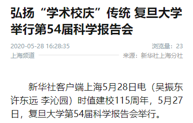 据不完全统计,截至5月28日17时,人民日报客户端、新华社客户端、光明日报客户端、经济日报客户端、央广网、中国新闻网、中国青年报客户端、中国教育新闻网、中国科技网、科学网、中国社会科学网、海外网、上观新闻、文汇APP、新民晚报、话匣子、看看新闻、上海日报(SHINE)、周到上海、澎湃新闻、青春上海、劳动观察、东方网、上海科技报、社会科学报、上海教育新闻网、第一教育等网站及新媒体发布校庆相关报道90余篇。《解放日报》《文汇报》刊登了公共卫生学科群行动计划相关报道,上海外语频道(ICS)、上海教育电视台播发电视新闻。