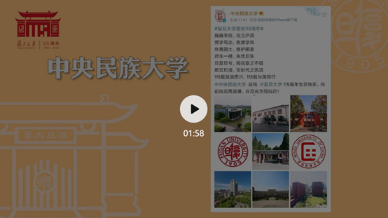 7点半起,一场持续12小时的“云聚复旦 共沐光华——复旦大学115周年校庆大联播”在“学习强国”学习平台、人民日报客户端、央视频、看看新闻、新浪微博、腾讯视频、抖音、快手、哔哩哔哩等9个平台同步开播,包含日月光华、美丽复旦、追望大道、家国天下、追求卓越、旦复旦兮等6个篇章和1个午间特别环节,全方位、多视角地展现复旦校情、凝聚复旦校友、传递复旦力量。身处世界各地的复旦人通过直播镜头云端相聚,为母校送上真挚祝福。截至直播结束,各平台累计观看量逾300万次,高峰时段逾60万人同时在线观看。