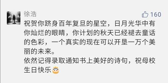 清晨6点半起,一篇复旦大学微信公众号的图文推送《复旦复旦!祝你115岁生日快乐!》开始在复旦人的朋友圈刷屏。在这个特殊的校庆日,全球复旦人打卡久违的校园建筑,跟随历史的脚步,点亮晨光中的复旦,为母校庆生。截至目前,阅读量逾40万,在看数逾6000 。