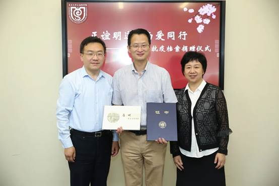 徐军代表学校向捐赠单位和个人颁发捐赠证书,向校友捐赠者赠送档案馆制作的《复旦上医履痕》纪念册