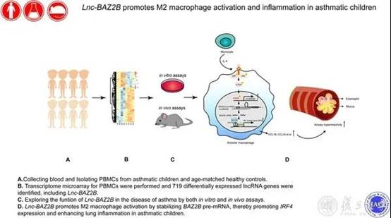 通过筛查哮喘患儿68423个非编码RNA基因,团队将目光锁定在一段长链非编码RNA上,并在国际学术界中首次将这段RNA命名为“Lnc-BAZ2B”。其在理论上可以成为儿童哮喘潜在的诊断与治疗靶标。
