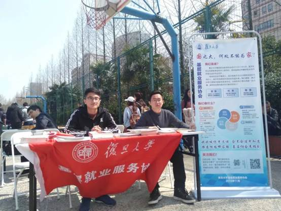 2018年,复旦大学大学基层就业服务协会参加“百团大战”招新(左一为李响)