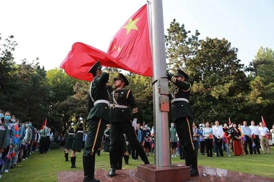 101日清晨,复旦大学国旗护卫队(下称国护队)向国旗坪行进,那一刻,张燮林恍惚间回到了军营
