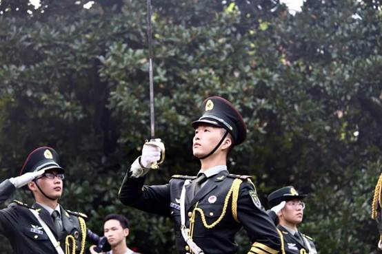 作为教练,两位海军仪仗队老兵着实让复旦国护队员有些苦不堪言。但训练时的高标准高要求,炼就了执行任务时的处变不惊——2019年国庆当日,急风骤雨中,国护队员们高质量地完成了升旗任务。