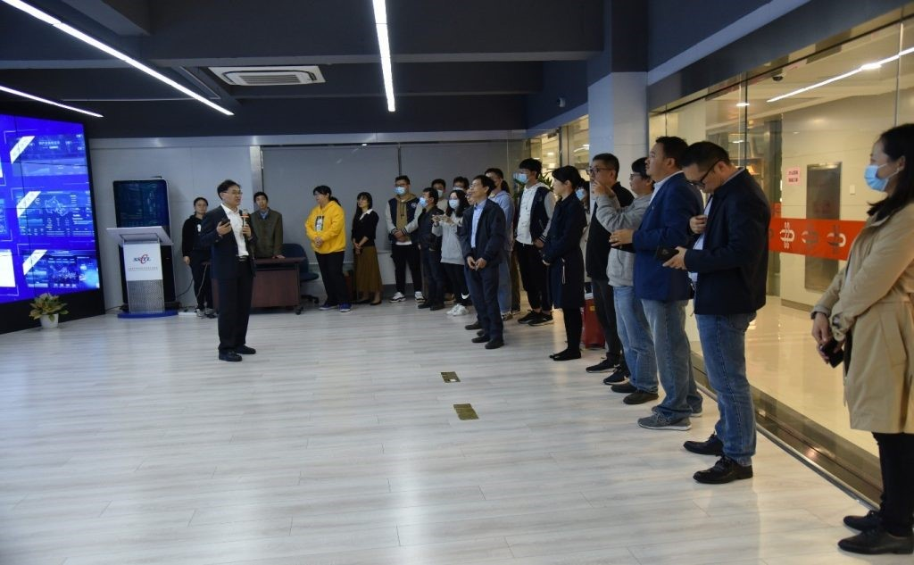 在上海计算机软件技术开发中心,支部党员和部分师生在中心主任张绍华同志的带领下,参观了网络空间安全平台、密码标准研究与测试实验室以及全球区块链感知平台,实地观看学习了多个项目实例。