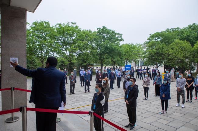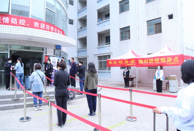启动仪式上,党委书记王清义宣布实战演练开始。演练参战全体人员按照既定实施方案依次在学校南大门、乐山园一楼餐厅、一区宿舍13号楼、4号教学楼等处,对疫情防控期间学生入校、食堂就餐、宿舍生活、教室上课四个场景及特殊情况处置进行了演练。