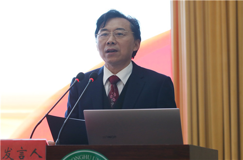 华中科技大学外语学院院长许明武教授在大会闭幕式上作总结发言,对省政府外事办公室及各会员单位的支持表示感谢,希望省译协未来能够吸引更多翻译人才,为从湖北走向全国、从全国走向世界做出更大贡献。(文字 李骞 摄影 胡静 李兆隆)