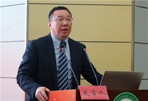 随后,现场进行了湖北省高校翻译专业学科建设研讨会。武汉东湖学院外语学院院长刘世平教授以“搭建‘一带一路’建设桥梁,构建新时代的‘巴别塔’——武汉东湖学院外语类专业学科建设巡礼”为题作主题报告,湖北中医药大学外语学院院长刘娅教授以“守正创新——中西合璧建设特色翻译学科”为题作了报告,武汉理工大学外语学院副院长薛睿教授作了“行业需求驱动下依工强文的翻译专业硕士培养模式”主题报告。CATTI国际版考委会负责人赵维真、外语教学与研究出版社华中信息中心主任卢汉生、上海外语教育出版社湖北省副主任沈巍先后发言,与与会嘉宾开展行业前沿交流。