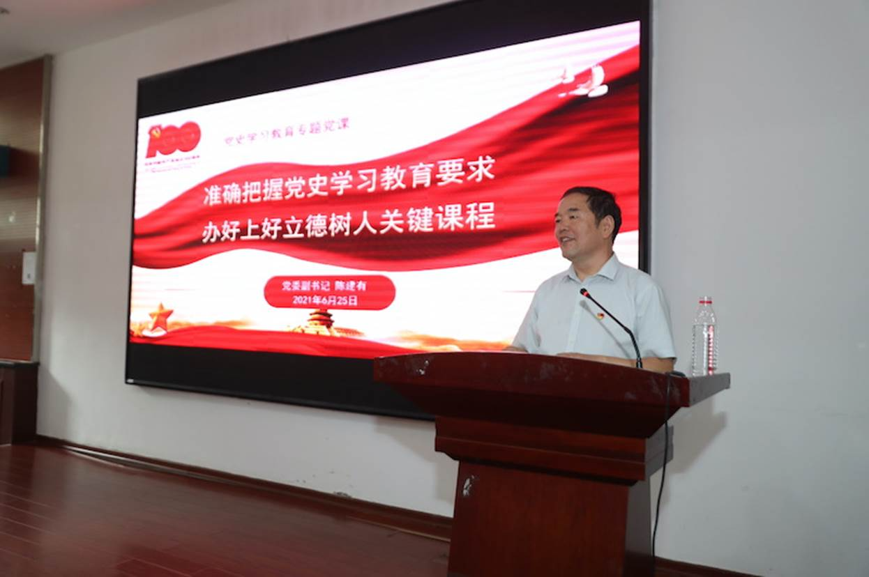6月25日下午,校党委副书记陈建有以“准确把握党史学习教育要求,办好上好立德树人关键课程 ”为题,为马克思主义学院全体专兼职教师,党委宣传部全体教职工讲授了一堂党史学习教育专题党课。