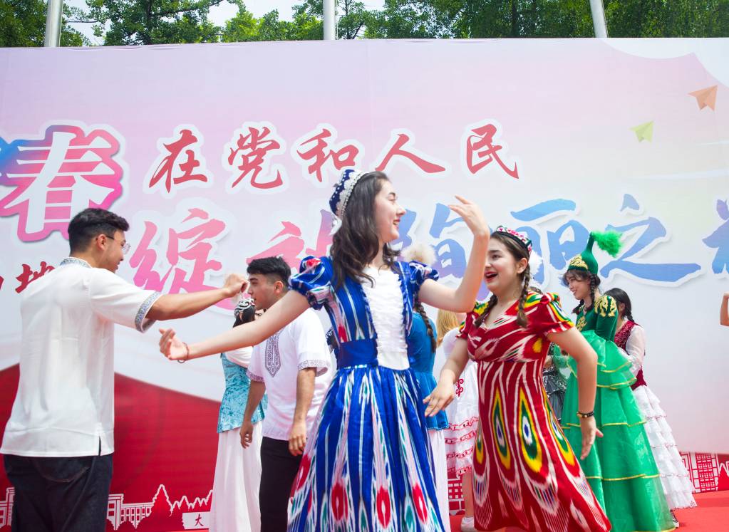 悦耳的歌曲与动感的舞步交织、闪耀的银饰和素净的哈达辉映,细节丰富的沙盘同内容翔实的展板一起叙述那一段段扣人心弦的党史故事……“扬帆向未来”版块生动地呈现了少数民族文化细节,表达大工各民族学生“像石榴籽那样紧紧抱在一起”的团结情感;同时展出“一楼一品”的党史学习教育成果,将党史学习教育真正融入学生学习生活的方方面面。
