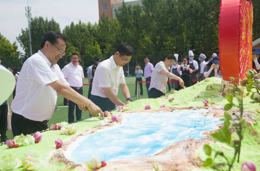 烧烤、炸串、大连焖子,凉皮、胡辣汤、清补凉……全国各地的代表性美食汇聚在西山生活区的“美食天街”。除了各具特色的美味小吃外,“浓浓幸福味”版块还包括长7.2米、宽2米、高2.4米、重3000公斤的“幸福大蛋糕”。郭东明校长切开这个超级大蛋糕,并将蛋糕一一发给排队等候的师生。美味用心的蛋糕获得师生一致好评,不足2小时就已经全部“光盘”。