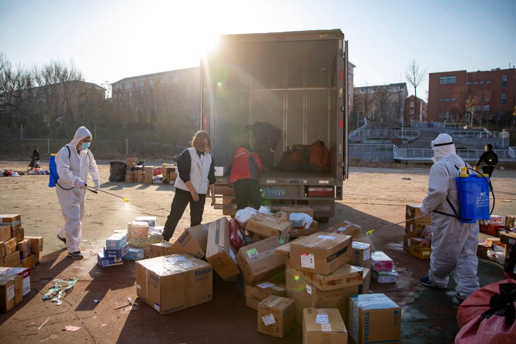 为避免过度聚集,校内快递在凌水河东侧操场的开放场地集中收发,并由校规办工作人员对全部快件进行消杀;为做好封闭管理,学校要求并监督各快递公司固定进校车辆及住校人员,驾驶员不得下车,由住校人员卸货,卸货后快递车辆按原路离校。11月15日,北山生活区快递恢复快递收发,在ABC区分别指定地点进行消杀后派发。11月29日,主校区9处丰巢快递柜约7000个仓格全部消杀后重新启用。