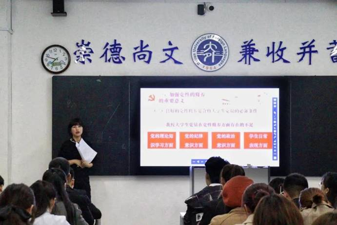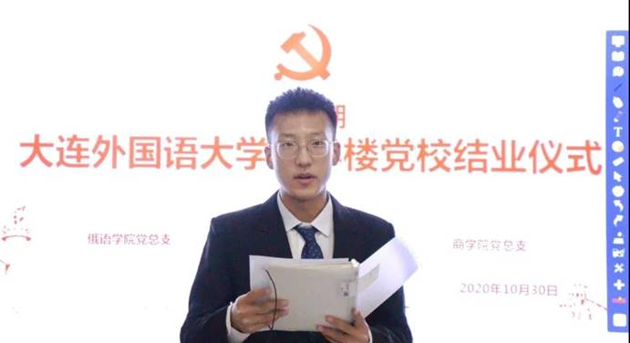 10月30日,大连外国语大学励学楼党校第六期第六讲暨励学楼党校第六期结业仪式于励学楼303教室成功举办。本次活动邀请到党委组织部副处级组织员刘云璐处长作为主讲人,亚非语言学院组织员毕文慧、俄语学院组织员刘宁宁、商学院组织员史琳及励学楼党校第六期全体学员共同参加。