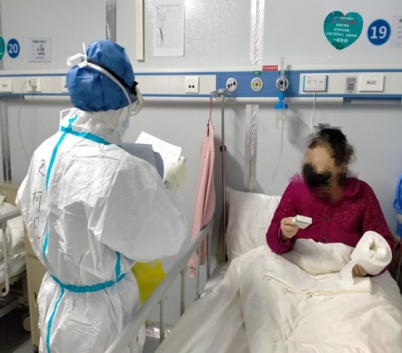 史珂凡被分到了雷神山医院感染一科四病区担任护理组长,在院领导、病区主任、护士长的带领下,医疗救治与护理工作进行的井然有序。接诊病人后,十分辛苦,穿上防护服,戴上N95口罩和护目镜,连续四个多小时穿梭在病房,汗水出了一身又一身,脸上深深的压痕,油油的皮肤,布满血丝的眼睛,都让她有些崩溃。但每次进入隔离病房,她依然会耐心询问患者:“您今天感觉怎么样啊?”倾听患者的各种问题,并进行解答。有些住院时间比较长的患者出现了焦虑情绪,她总是鼓励说:“您今天的状态不错,会越来越好的,加油!”。看到患者的笑容,所有的付出都是值得的。
