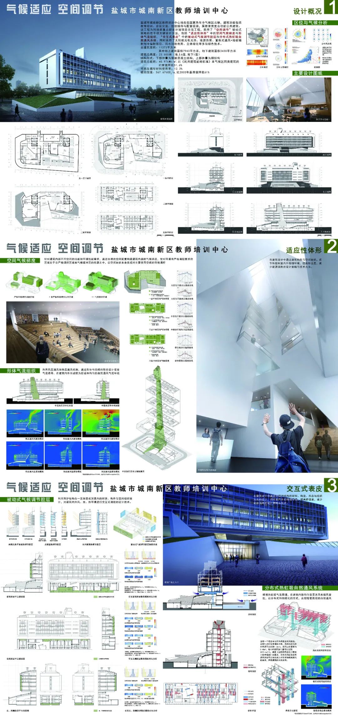 盐城市城南新区教师培训中心项目,以复合功能的需求为引导,理性选择多种主被动适宜技术,达成建筑与环境的和谐相处。