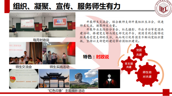 党支部书记林心仪作了题为“强化支部品牌建设 推动党团班一体化”的组织建设分享,从组织管理、思政教育、党建品牌三方面介绍支部党团班联动建设经验。