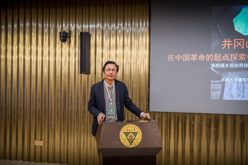 张彤的报告主题为《井冈山乡建:在中国革命的起始点探索中国式现代化的建设路径》。他介绍了东南大学团队在中国革命起点井冈山开展帮扶规划和设计的经历,从大仓村结合红色历史线路的公共空间体系规划和大仓讲习所等建筑设计开始,系列实践包括“井岗红飘带”——茅坪镇的新乡村生活共同体营造;“井冈之星”——以八角楼为元素的全民文体中心建筑设计;“匠心营村,星火相传”——乡村振兴示范村规划暨暑期大学生联合工作营;“六十里新井岗”——新时代城乡融合发展示范带规划建设等。这些工作中,团队充分发挥学科优势,传承红色基因和本土文化,并将帮扶工作与人才培养紧密结合,形成了强有力的“乡村振兴共同体”,在中国革命的起始点探索中国式现代化的建设路径。