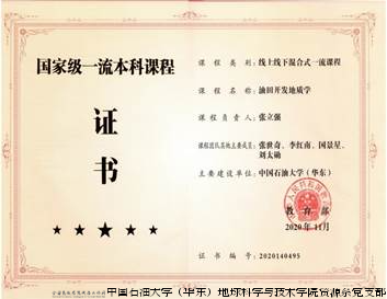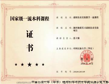 2019年,课程配套的“油田地质实习虚拟仿真实验”入选“国家虚拟仿真实验项目”,2020年入选国家一流课程。同年,《油田开发地质学》入选国家级线上线下混合式一流课程,并出版了《油气田开发地质学基础练习与典型案例分析》辅助教材。