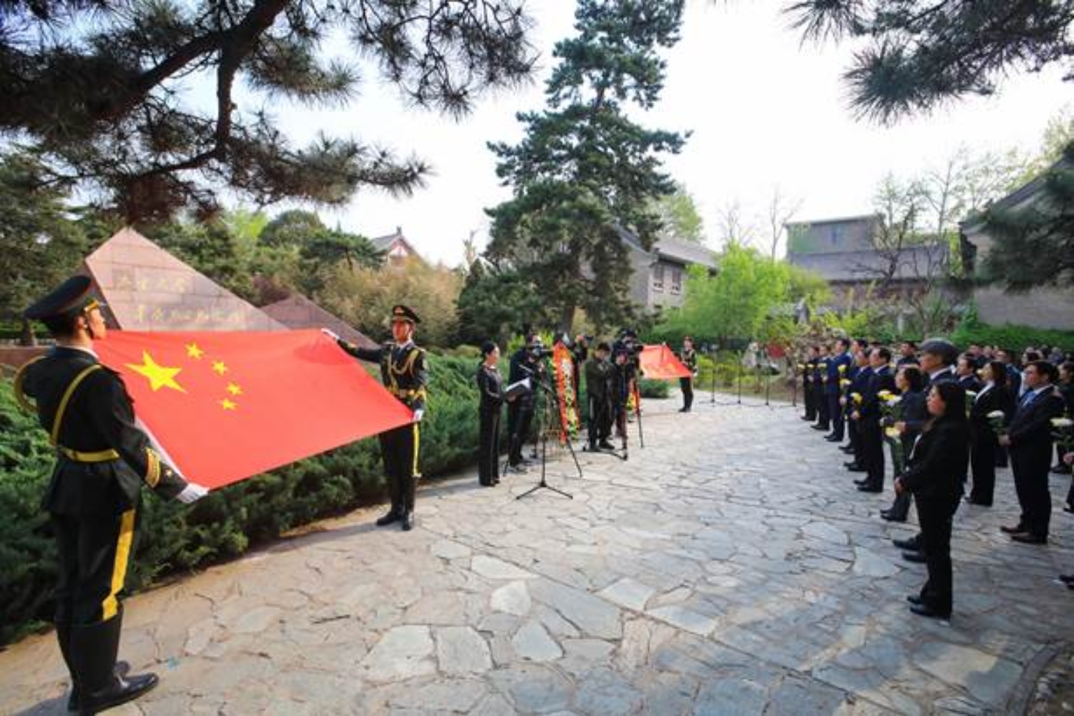 全体师生面向革命烈士纪念碑鞠躬三次,瞻仰纪念碑,并依次向革命烈士纪念碑、李大钊同志雕像、蔡元培先生雕像敬献鲜花。