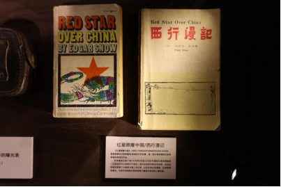 纪念馆里陈列的埃德加·斯诺所著《红星照耀中国/西行漫记》