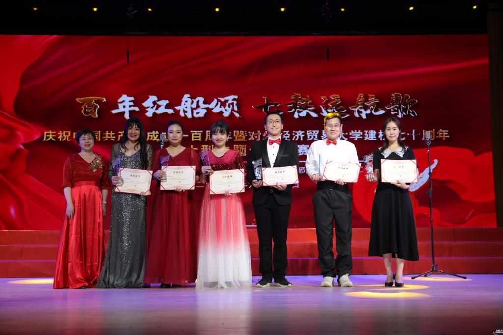 6月17日晚,“百年红船颂 七秩远航歌”——庆祝中国共产党建立一百周年暨对外经济贸易大学建校七十周年大型主题合唱比赛在求索一层报告厅拉开帷幕。