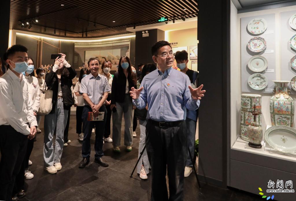 中国对外经贸博物馆在校庆70周年前夕开馆,红色资源丰富,是开展对外开放历史教学活动的不错场所。历史是最好的教科书,实践教学最受学生欢迎,蒋庆哲书记带领同学们走出课堂,迈进中国对外经贸博物馆,让同学们更能身临其境,亲身体悟这节党课的魅力。中国贸易见证了一个民族从古时的光风霁月,走向近代的凄风苦雨,又终归于新中国成立后的河清海晏。博物馆内,蒋庆哲娓娓道来,带领学生共同参观了三个对外经贸主题展区。从草原丝路与海上丝路的先后开通,到古时探险家们帆船舰队和商船队的先后建立,他结合展厅相关文物还原出欧洲商人相继涌向的那个传说遍地是黄金的文明古国;从被大炮、鸦片打开的国门到被列强肆意践踏的主权,他为同学们再现了那段血泪铺砌的道路和极度屈辱的历史;从成果丰硕的“一带一路”到不断加快建设的自由贸易试验区,他教导同学们,泱泱大国的奠定离不开全国人民的开拓创新、砥砺前行。