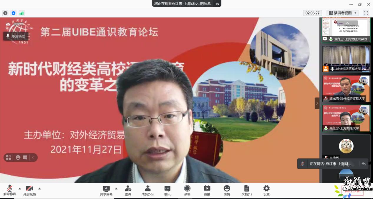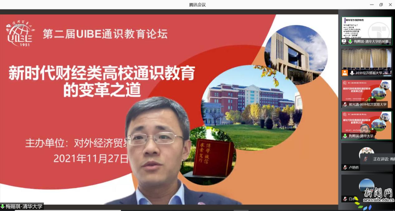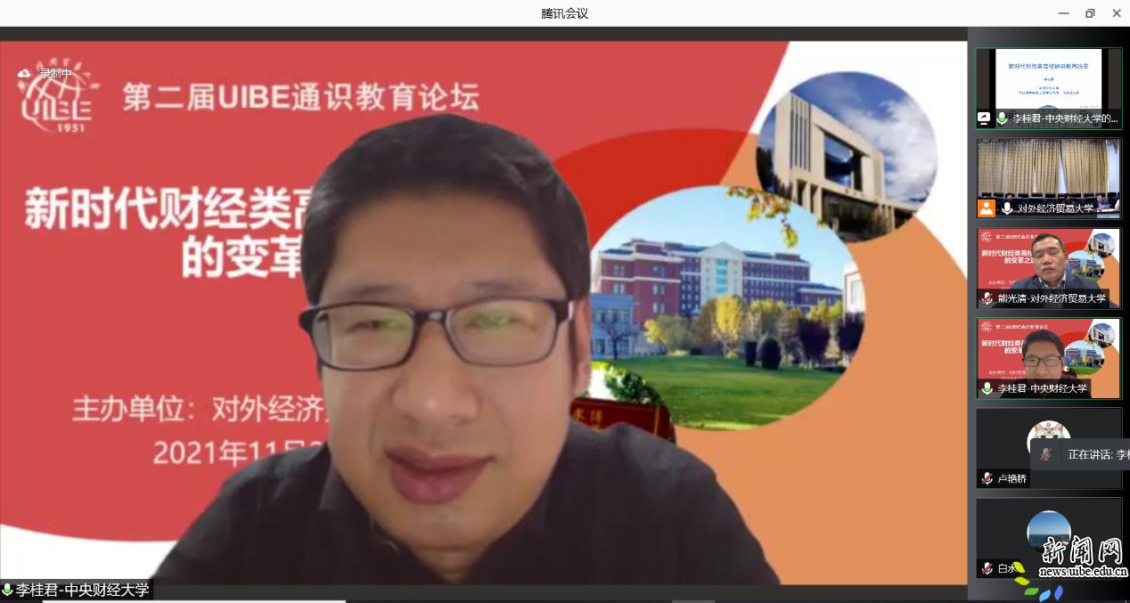 11月27日,对外经济贸易大学举办第二届通识教育论坛“新时代财经类高校通识教育的变革之道”,会议采取线上线下相结合的形式。来自北京大学、清华大学、上海财经大学、上海交通大学、中央财经大学、对外经济贸易大学等著名高校的十余位专家学者围绕“新时代通识教育的新变革与新趋势”、“新时代通识教育中教学理念的变化与革新”两大主题进行了深入讨论和交流。全国多所高校的100多位教师参加了会议。