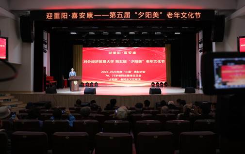 金秋十月爽,九九话重阳。为迎接重阳佳节,弘扬中华民族尊老、敬老、爱老、助老的传统美德,10月20日上午,对外经济贸易大学2023年度离退休人员“三星”表彰、70岁75岁生日会暨第五届“夕阳美”老年文化节文艺展演在求索楼报告厅隆重举行。校党委书记黄宝印等校领导来到老先生、老教授、老干部、老职工中间,与他们欢聚一堂,向老同志们致以节日的问候和衷心的祝福,140余名离退休老同志参加本次活动。