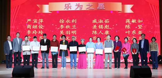 离退休人员工作处处长徐文兵宣读《对外经济贸易大学关于表彰离退休人员“学习之星”“健康之星”“乐为之星”的决定》,佟海山等15位老同志评为“学习之星”,郝慎言等10位老同志评为“健康之星”,严宝萍等20位老同志评为“乐为之星”。黄宝印书记、张小锋副书记为受表彰人员颁发荣誉证书并表示祝贺。