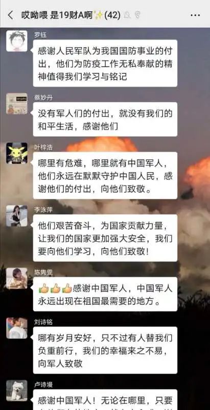 2019级财务管理A班、人力资源管理AB班等10余个班级则利用微信等平台发起线上交流发言活动,引发同学们对大学生征兵入伍的热议,营造出良好的携笔从戎、参军报国氛围。