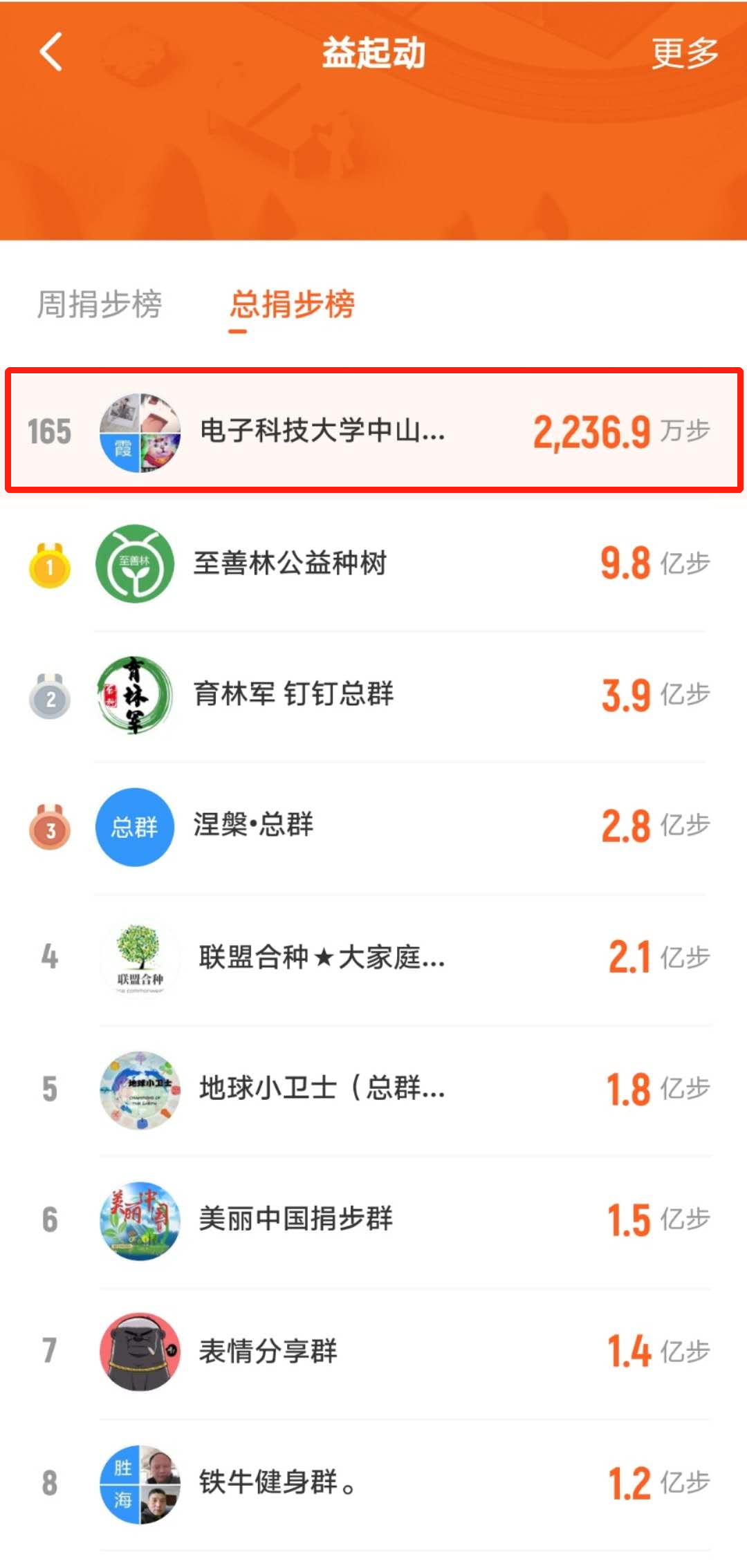 管理学院团委推出的“益起动”公益跑捐步活动在15天内共有753人加入我们的团队,排名第一捐步者步数高达44.1万步!有269人捐步总额在20万以上!此外钉钉1群在钉钉全网总排名25名捐步达6174.8万步!钉钉2群在全网总排名165名总捐步数达2236.9万步!