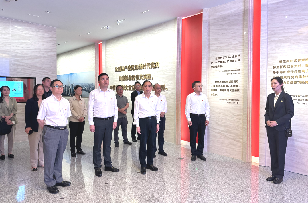 上海市全面从严治党警示教育基地自去年8月启用以来,已成为常态化制度化开展警示教育的重要阵地。在警示教育基地工作人员的讲解和引导下,领导班子成员依次参观各展厅,重温建党初期开展党的纪律建设的伟大探索,学习上海坚定不移全面从严治党、把纪律和规矩挺在前面的深入实践,从本市发生的违纪违法典型案例中深刻汲取教训。