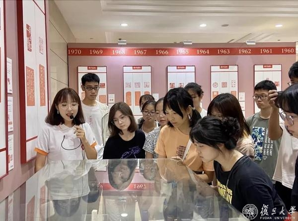 开学季,复旦校园迎来了2021级新生,他们进校的必修课之一就是参观此次展览。印记初心,代代传承,来自各院系的本科生讲解员们将为新生提供讲解,该项服务将一直持续至10月7日。