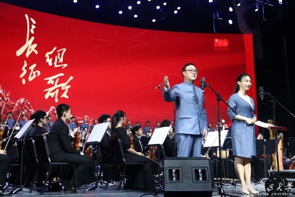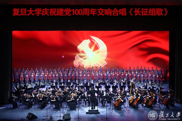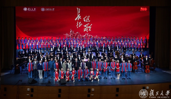 传承革命理想,弘扬长征精神,在建党一百周年,长征胜利85周年之际,2021年10月24日复旦大学学生和教工合唱团与上海交通大学交响乐团联袂,在复旦大学相辉堂同台演绎《长征组歌》。此次演出将音乐、艺术和党史学习相结合,不仅在莘莘学子们心中唤起对祖国历史的讴歌和铭记之心,也成为了复旦师生党史学习教育中的一场鲜活生动的现场课。