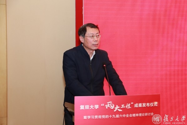 复旦大学党委常委、副校长陈志敏主持党的十九届六中全会精神理论研讨会。