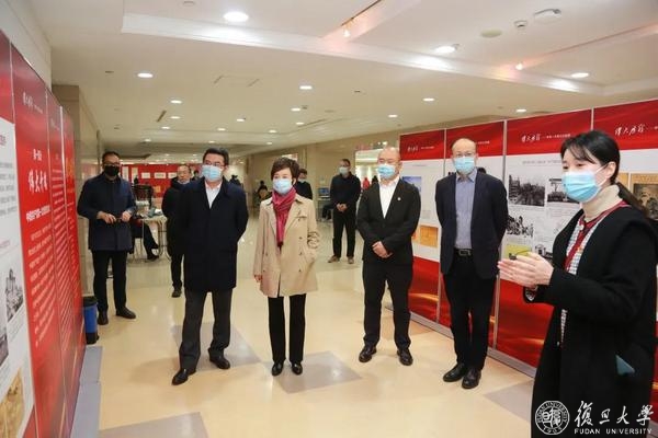 会上,焦扬、闵辉共同为高校中国共产党伟大建党精神研究中心复旦大学分中心揭牌,唐洪涛、陈志敏共同为伟大历程——中共一大至七大巡展(复旦大学站)揭幕。活动开始前,焦扬、闵辉一行参观了展览。