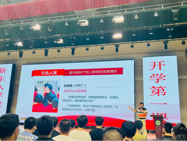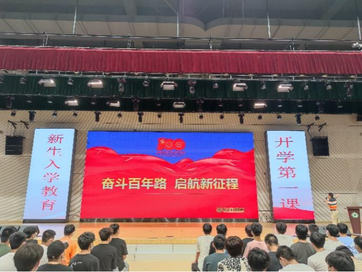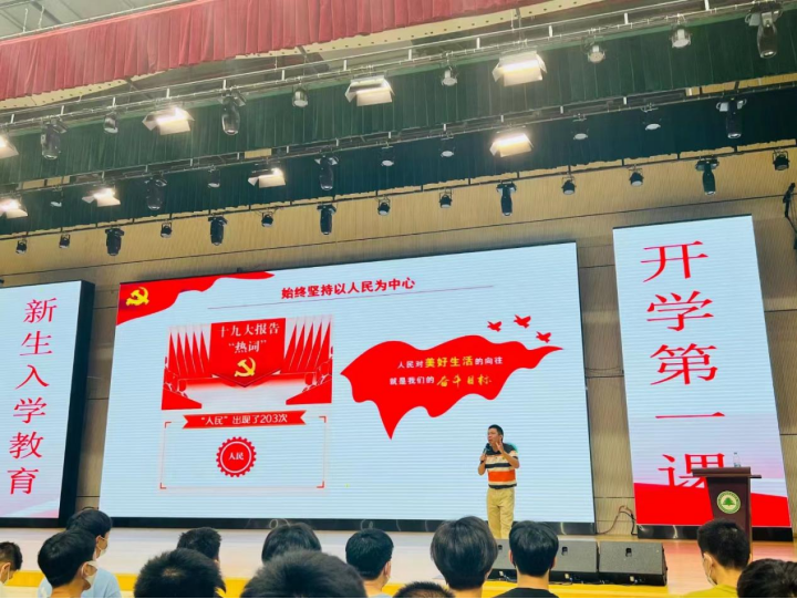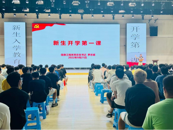 长夏逝去,凉秋悄来,九月金秋开学季,教育正当时。信息工程系2022级新生带着憧憬和希冀来到了新的人生起点,为了进一步加强爱国主义教育和理想信念教育,厚植同学们的爱国主义情怀,激发同学们的爱国热情,坚定理想信念,上好新生“开学第一课”,2022年9月21日晚19时江南体育馆,信息工程系党总支书记罗志斌以《奋斗百年路,启航新征程》为主题,给1300多名新生带来了一堂有高度、有温度、有深度、有情怀的新生“开学第一课”。