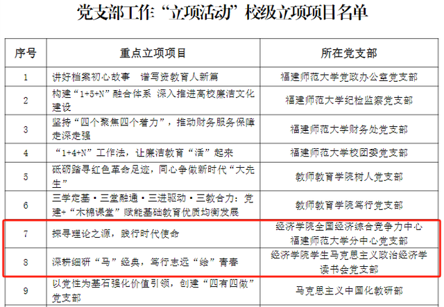 福建师范大学经济学院三个党支部获批2022-2024学年党支部工作“立项活动”校级立项项目。