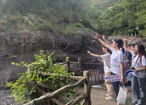 做强至“旅”,因地制宜发展乡村旅游。“大家一起抬头招手呀!”实践队队员拿出无人机进行航拍,走进了位于樟溪镇的广东饶平青岚地质公园,各式各样的青岚奇景映入眼帘,壶穴、不老根、风动石等奇观点缀着这一片绿营,处处都展现着大自然的鬼斧神工。实践队员们积极拍摄素材,准备以视频的形式将当地旅游胜地宣传至更多人,尽自己的一份力让一群人感受饶平魅力。青岚壮美景观离不开当地的农业、文化,自然景观、历史遗韵和民间风情完美融合,田园农业资源要素整合,打造旅游文化品牌,让饶平底蕴更有魅力。