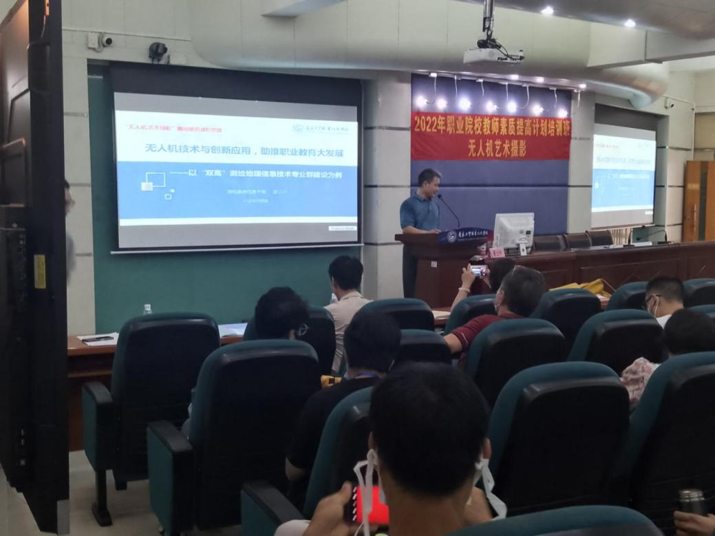 在开班典礼上,测绘遥感信息学院院长速云中着重讲解了教学中无人机及新技术应用,并对培训课程做了相关介绍,以“双高”测绘地理信息技术专业群建设为例,从我国职教新特点、专业群组群逻辑、教学中无人机及新技术应用、专业群建设成效等方面进行详细的讲解与经验分享。