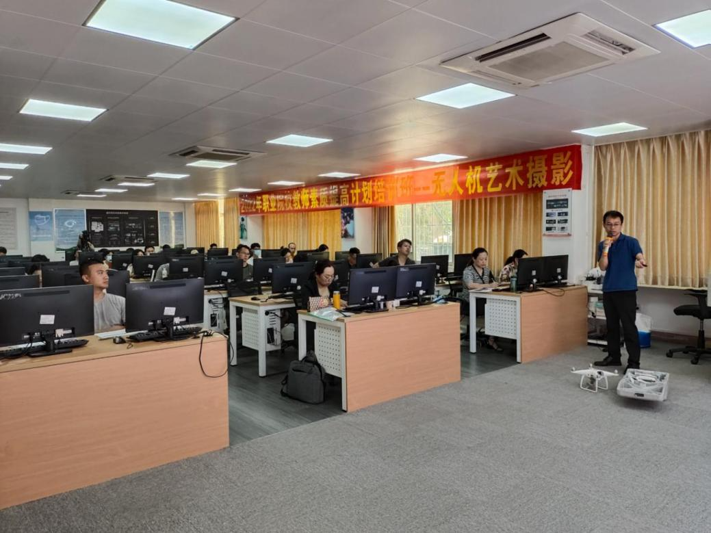 7月9日上午,广东工贸职业技术学院承办的“无人机艺术摄影”职业院校教师素质提高计划培训顺利举行。本次国培从7月9日至15日为期7天,总共40名中职院校教师参加。测绘遥感信息学院教师第一党支部发挥专业技能优势,深入参与本次国培项目。支部党员速云中、祖为国、谭金石、刘丽作为培训教师分别以“无人机课程思政”、“无人机飞行原理”、“无人机飞行安全与法律法规”、“无人机航拍VR全景图及制作”为题做了专题培训。