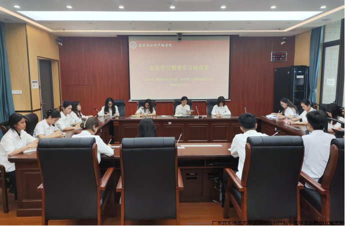 支部书记伍龙妙领学新修订的《中国共产党纪律处分条例》和详细解读了《中共广东技术师范大学法学与知识产权学院委员会关于开展党纪学习教育的工作方案》,结合支部建设实际、法学专业特色和不同年级的实际情况不断引导同志们深刻领悟党纪学习教育的重要意义和主旨内容,阐明党纪学习教育对于提升党员的纪律素养与规矩意识的重要作用。