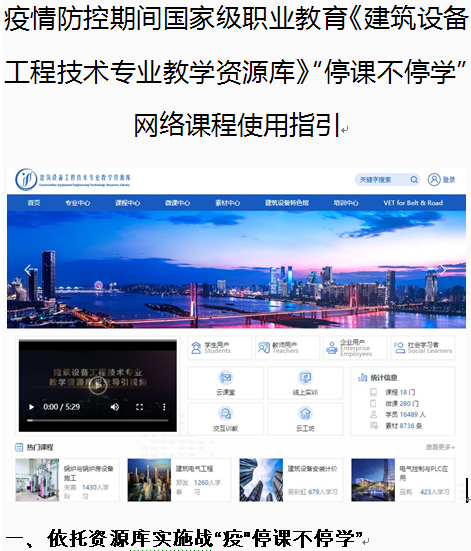 图2 疫情防控期间国家级职业教育 <建筑设备工程技术专业教学资源库> “停课不停学”网络课程使用指引 建筑设备工程技术专业教学资源库>