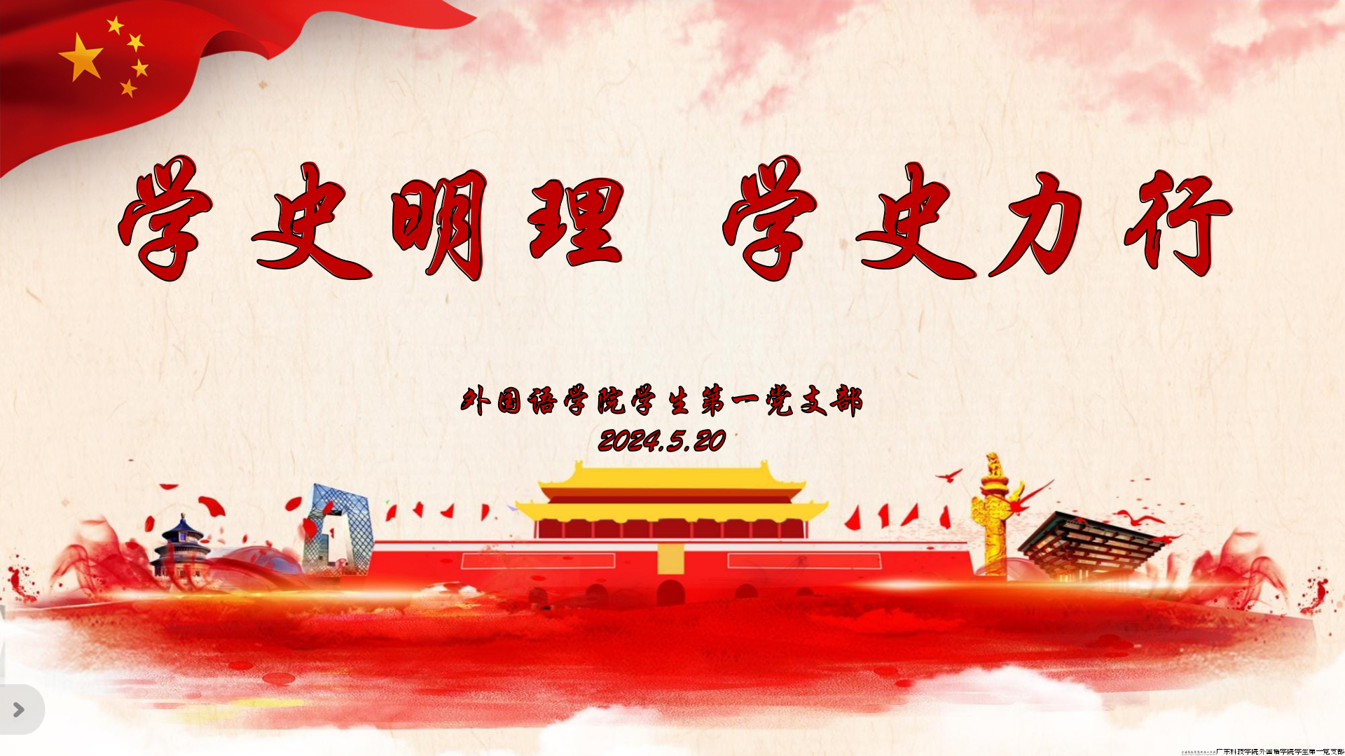 2024年2月,中共中央印发了《党史学习教育工作条例》(以下简称《条例》),并发出通知。通知指出,开展党史学习教育,充分发挥党史以史鉴今、资政育人的作用,是党和国家工作大局中的一件十分重要的工作。为党员们从中汲取智慧和力量,更好地指导实践提供了重要作用。在此背景下,外国语学院学生第一党支部于2024年5月22日,在松L4-610开展以“学史明理,学史力行”为主题的党日活动。