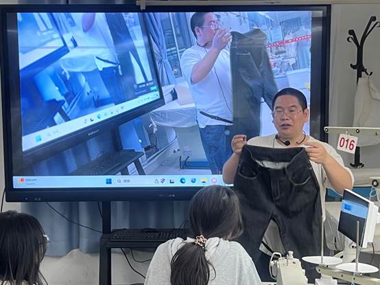 技术主管张茂先生给学生讲授牛仔裤工艺结构