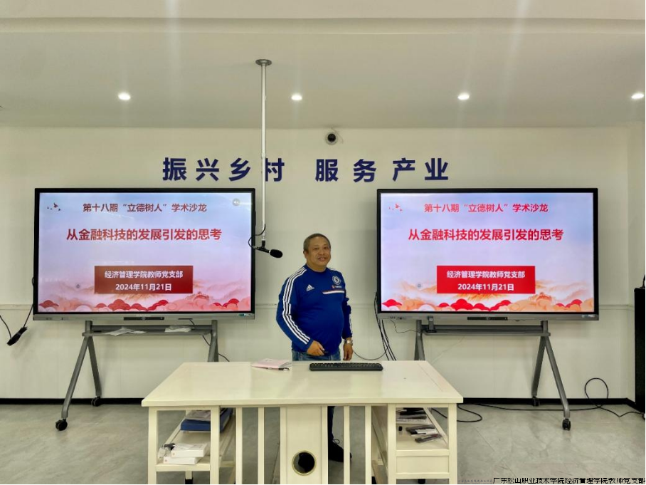 近日,支部在浈江校区数教基地104举行第十八期“立德树人”学术沙龙活动,加强教师对新技术的认知,帮助教师在技术变革中提升专业能力,更好地服务学生发展。支部党员江展鹏博士围绕“从金融科技的发展引发的思考”作主题分享。
