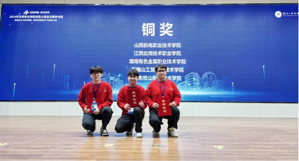 10月27日,备受瞩目的2024世界职业院校技能大赛(高职组)总决赛争夺赛能源动力与材料赛道(新材料智能生产与检测小组)在河北工业职业技术大学圆满落幕。我校先进制造学院黄志森、徐佳文、张锦荣三名学生(指导老师:刘志明、张沈宁)经过激烈角逐,在比赛中凭借着卓越表现和出色实力斩获铜奖,刷新了我校在该赛项的最好成绩。