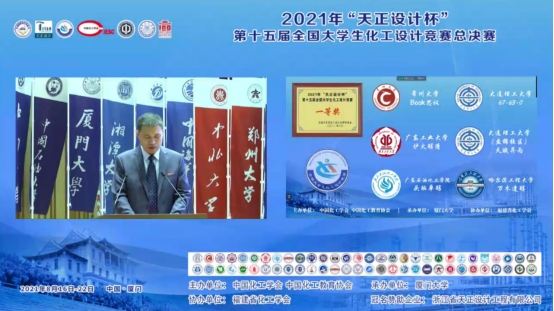 本次竞赛来自天津大学、浙江大学、四川大学、中山大学、厦门大学、中南大学等401所高校的2735支队伍,1.3万余人参赛,历经东北、华北、华东、华中、华南、西北、西南七个赛区的层层选拔,最终遴选出60支队伍晋级全国总决赛。由于疫情原因,本次总决赛采用文档、 图纸、 现代设计方法专项评审和两轮线上答辩,并采用腾讯会议网络直播,吸引全国化工师生观看次数累计达5万多人次。我校参赛师生克服种种困难,利用课余时间、节假日夜以继日完善作品,陈辉教授等指导教师几乎每天通过线上或线下指导和答疑,这个一等奖凝聚了指导老师和全体参赛队员7个多月来的心血。